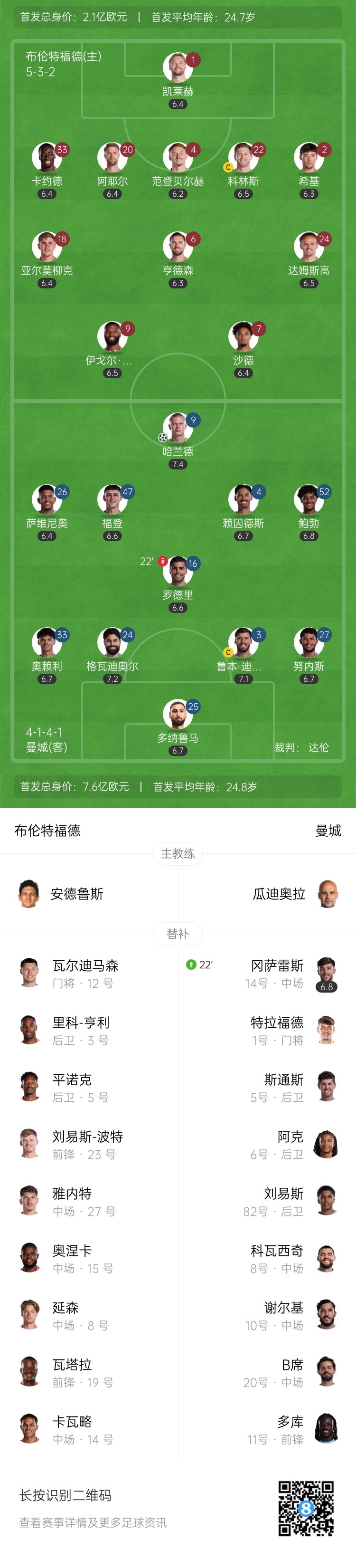 10月6日讯 北京时间23:30,英超第7轮曼城客场挑战布伦特福德,比赛在布伦特福德社区球场打响!上半场,哈兰德扛人抽射破门,罗德里无对抗情况下伤退。半场结束,曼城暂时1-0领先布伦特福德!