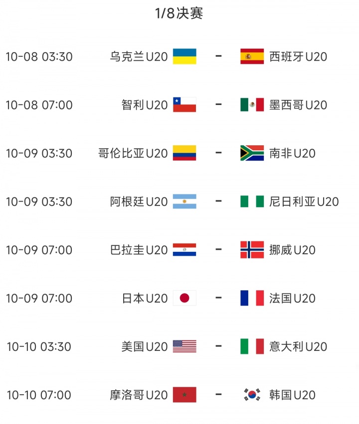 10月06日讯 世青赛(U20世界杯)16强全部出炉,对阵情况也随之全部揭晓。16强比赛将从10月8日开始进行。