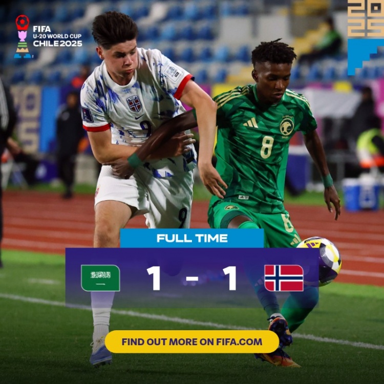 10月6日讯 世青赛(U20世界杯)小组赛第三轮比赛,沙特1-1战平挪威。