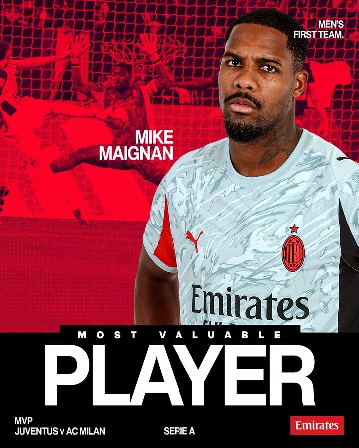 米兰官方宣布,迈尼昂当选本场比赛队内最佳。