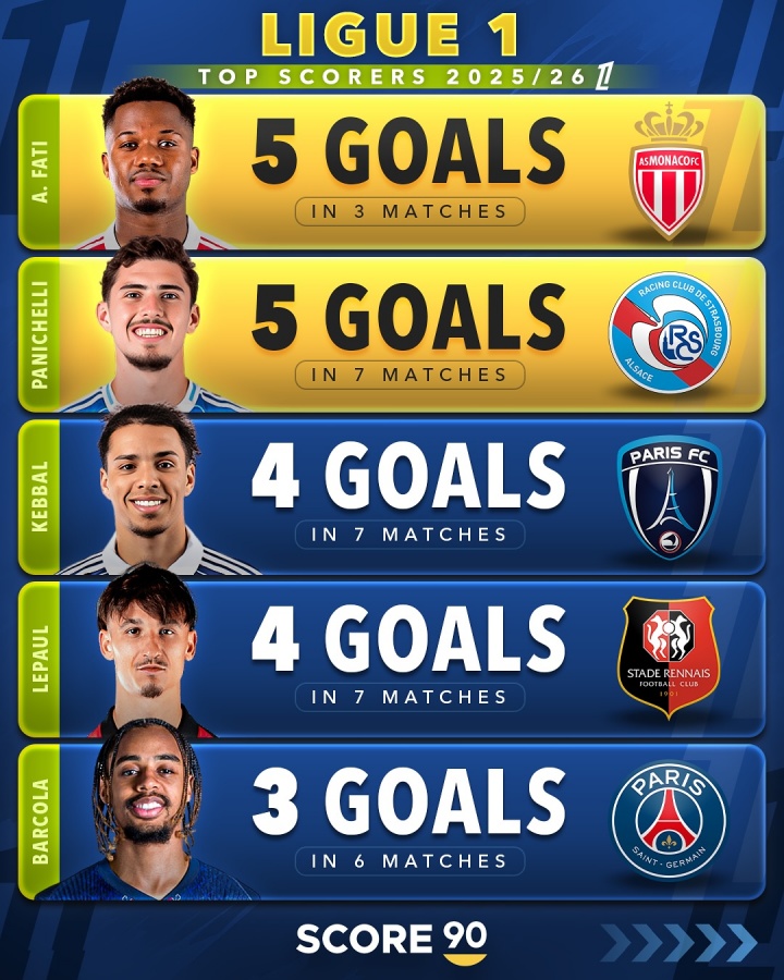 五大联赛射手榜:凯恩11球一骑绝尘,哈\姆9球,法蒂法甲并列第一