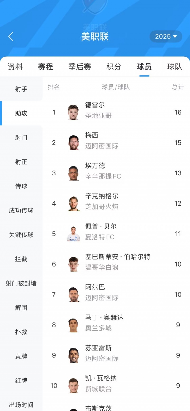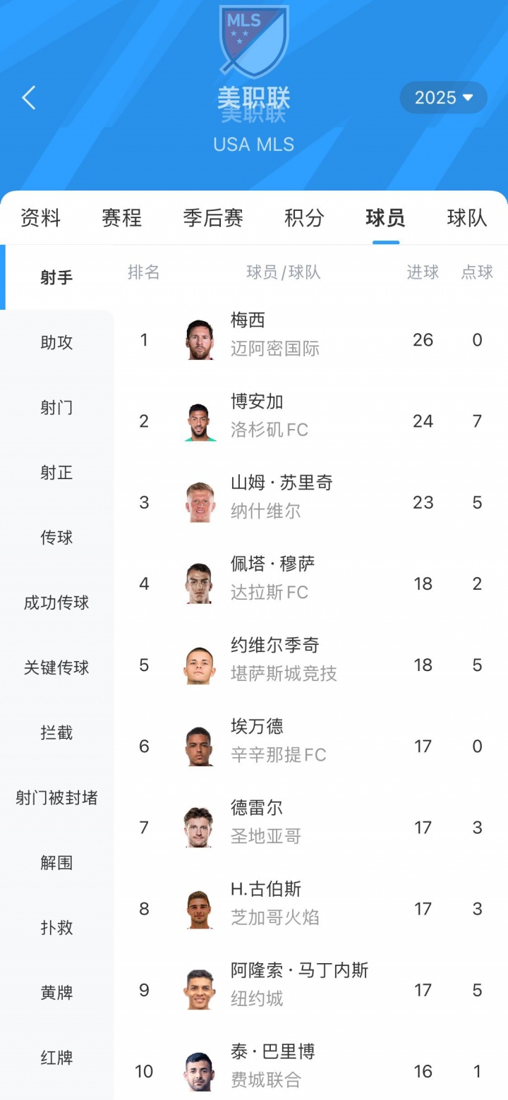 冲击助攻王!梅西26球0点领跑MLS射手榜,15助排名助攻榜第二