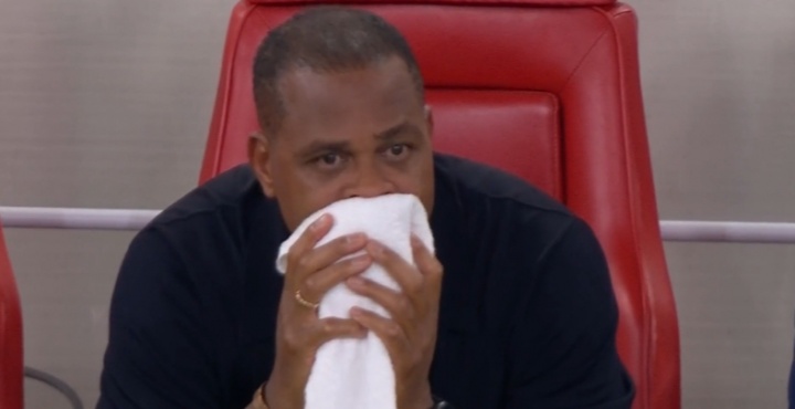 随后,他就一直坐在教练席上不断地用毛巾抹脸,眼眶泛红,场上队员和工作人员与马宁发生冲突时他也只是看着。