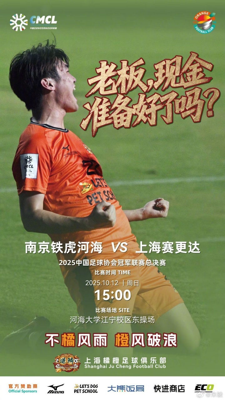 据此前媒体人报道,以及上海橘橙的官方海报显示,球队投资人兼球员,59岁的前上海申花老板朱骏,为球队开出了400万元人民币的冲乙奖金。