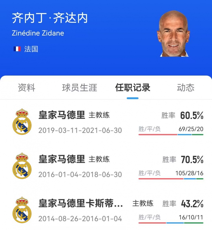 齐达内2021年再度卸任皇马主帅一职后便一直赋闲,他曾带领皇马获得欧冠冠军、西甲冠军等多项荣誉。