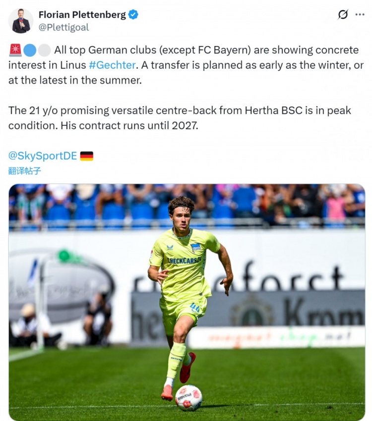 10月15日讯 据德国天空体育报道,多家德国顶级俱乐部有意柏林赫塔21岁中卫盖赫特。