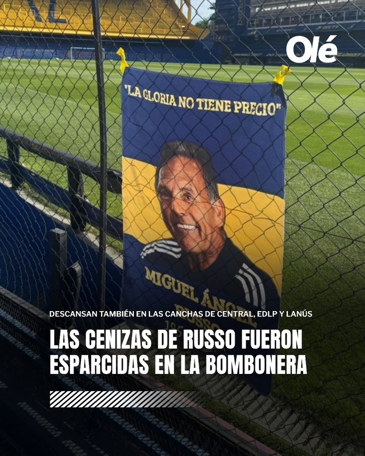 10月16日讯 奥莱报报道,阿根廷名帅米格尔-安赫尔-鲁索的骨灰于本周三被撒在了博卡青年的主场糖果盒球场的草坪上。