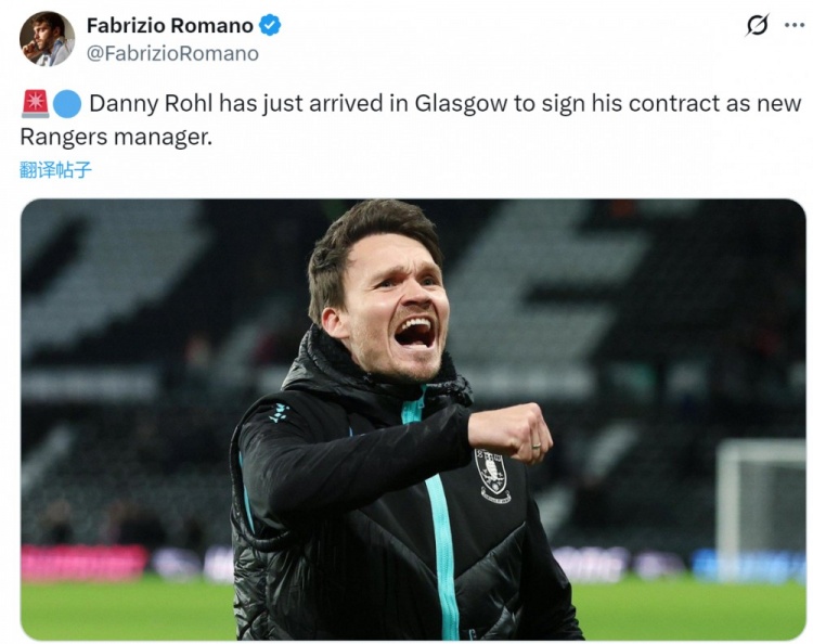 根据此前媒体的报道,36岁德国教练丹尼-罗尔即将出任格拉斯哥流浪者主帅,罗马诺指出,丹尼-罗尔刚刚抵达格拉斯哥,将与流浪者签约。