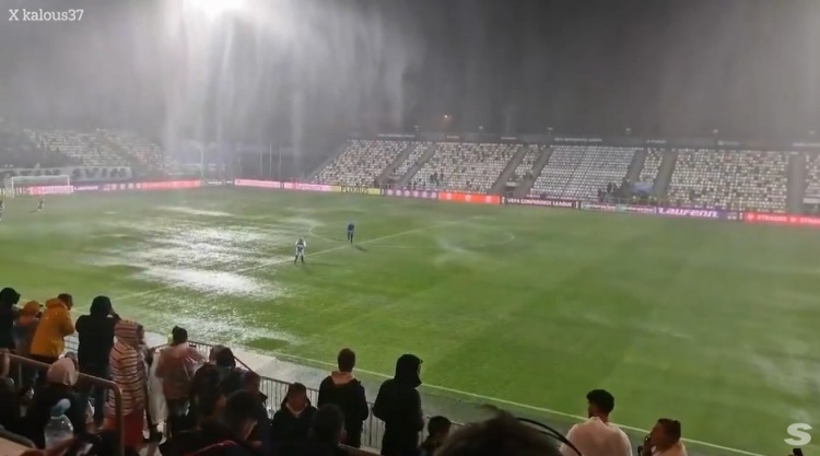10月24日讯 太阳报消息,在昨晚的一场欧协联比赛中,克罗地亚球队里耶卡主场迎战捷克球队布拉格斯巴达,但比赛仅进行了12分钟就因为暴雨和球场严重积水问题,不得不中断。