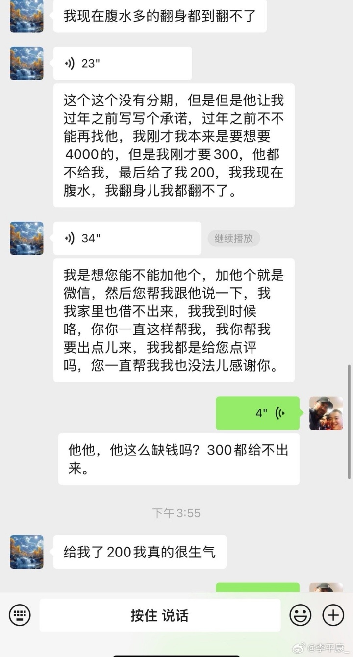 今日,李平康再发文,爆料前中超球员戴琳借钱不还,并晒出借条、聊天记录、债主病历等证据,还提到要债过程中戴琳300块钱都拿不出来。