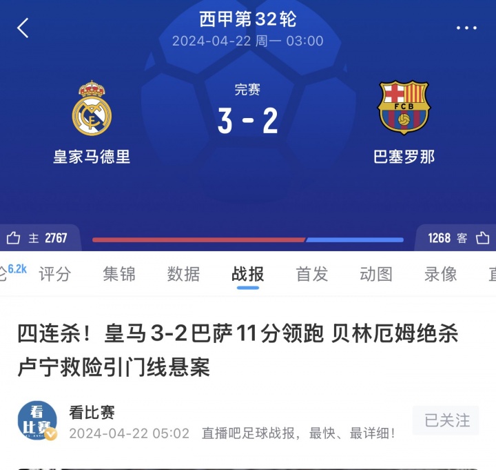 这是索托生涯第二次执法国家德比,他上一次执法国家德比是2024年4月,当时皇马3-2绝杀巴萨。