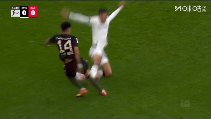 10月25日讯 德甲第8轮,拜仁客战门兴,比赛第17分钟,门兴的韩国归化中场卡斯特罗普飞铲迪亚斯,裁判首先出示黄牌,随后经VAR提醒后观看回放并改判直红,拜仁多打一人!