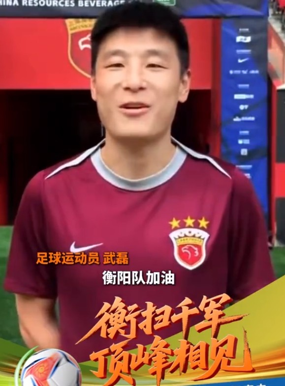 湖南衡阳队的小兄弟们你们好,我是武磊。看到你们在湘超联赛里拼搏,我很高兴,草根足球是中国足球的根,你们就是中国足球的希望,你们的每一次奔跑每一次拼抢,都是在为中国足球的土壤注入最坚实的力量。我相信,只要有理想、有目标、有坚持,无论胜负,你们都是赢家,祝你们“衡”扫千军。