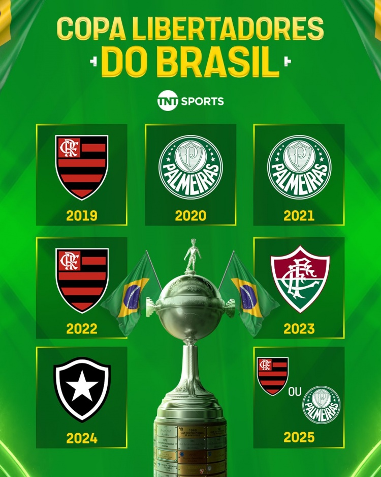 据TNT统计,2019年以来的6届南美解放者杯,冠军均为巴西球队。