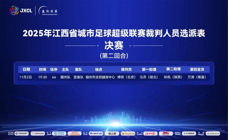 11月2日讯 2025年江西省城市足球超级联赛(简称“赣超”)决赛次回合,宜春队vs赣州队的比赛将于今晚19:30在赣州市全民体育中心打响,首回合赣州队客场2-0取胜,取得先机。