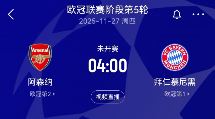 11月05日讯 凌晨欧冠,阿森纳和拜仁分别战胜对手目前在欧冠联赛阶段保持全胜,下一轮比赛两队将在酋长球场进行直接对话。