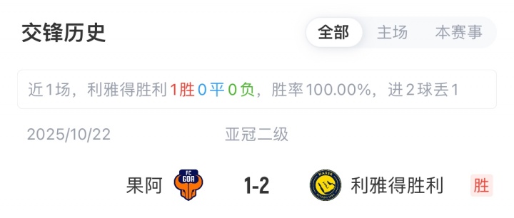 胜利亚冠二级小组赛3轮全胜位居D组第一,联赛7轮全胜积21分位居沙特联榜首;果阿亚冠二级小组赛3轮全负位列D组垫底,联赛14胜6平4负积48分位居印度超第二。