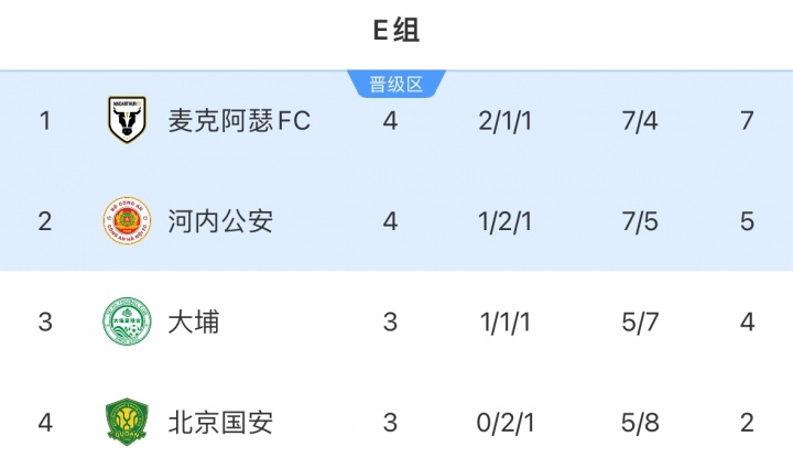 国安同组对手!麦克阿瑟2-1河内公安升至榜首,国安今晚对阵大埔