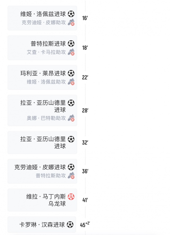 太残暴巴萨女足半场8-0领先拉科鲁尼亚 此前9轮狂进39球丢2球