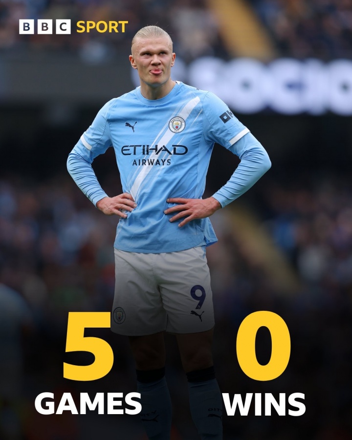 自2022年7月加盟曼城以来,哈兰德已经代表球队5次首发对阵范戴克,但至今仍2平3负未尝胜绩。