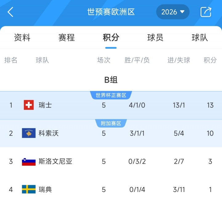 11月16日讯 世预赛欧洲区小组赛B组第5轮,斯洛文尼亚主场0-2负于科索沃,提前一轮确定无缘2026世界杯。